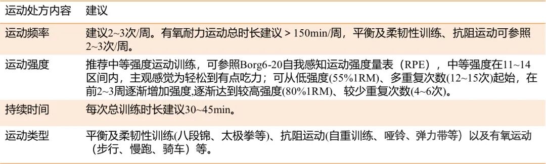 运动康复训练有助于维持或改善肌肉质量和功能。鼓励有营养风险或营养不良的老年人在充足营养支持基础上进行体育锻炼。